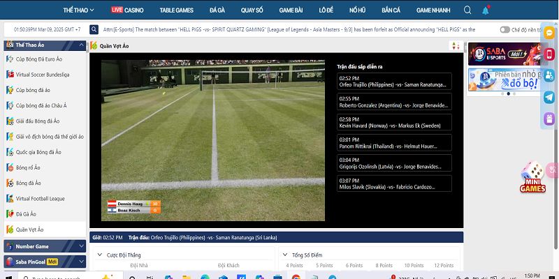 Những game hiện có tại mục thể thao ảo