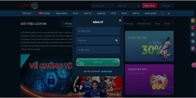 Sau đó bạn nên thực hiện việc đăng nhập vào trang LUCKY88 hoặc khởi tạo tài khoản thành viên mới. Để trải nghiệm đầy đủ những tính năng hiện có ở nền tảng bạn nên hoàn thành yêu cầu ở bước này và lưu ý nên sử dụng chính xác thông tin của mình để quá trình truy cập diễn ra thuận tiện nhất.
